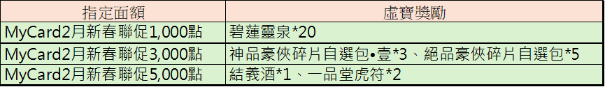 在活動期間內,至活動通路購買指定面額,並成功儲值進遊戲中,即可獲得相對應虛寶獎勵回饋呦!